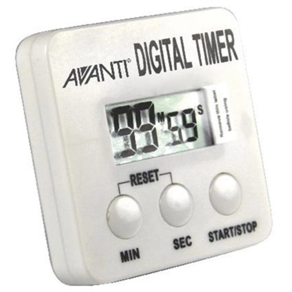 Never miss a beat with the Avanti Digital Timer.- Counts upwards or downwards for up to 100 minutes- Timer can clip, stand or even fix magnetically to any steel surface- Battery operated (batteries included) barware to kitchen tools, Avanti is where high-quality meets high-style.