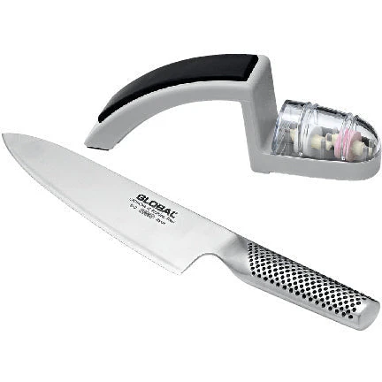 There is possibly no better tool to have in the kitchen than a well sharpened cook’s knife. With the Global Knife and Sharpener Set, you have the right ingredients for the perfect kitchen compainion. Cook’s knives are sometime called chef’s knives and are used to for the lions share of work in the kitchen.