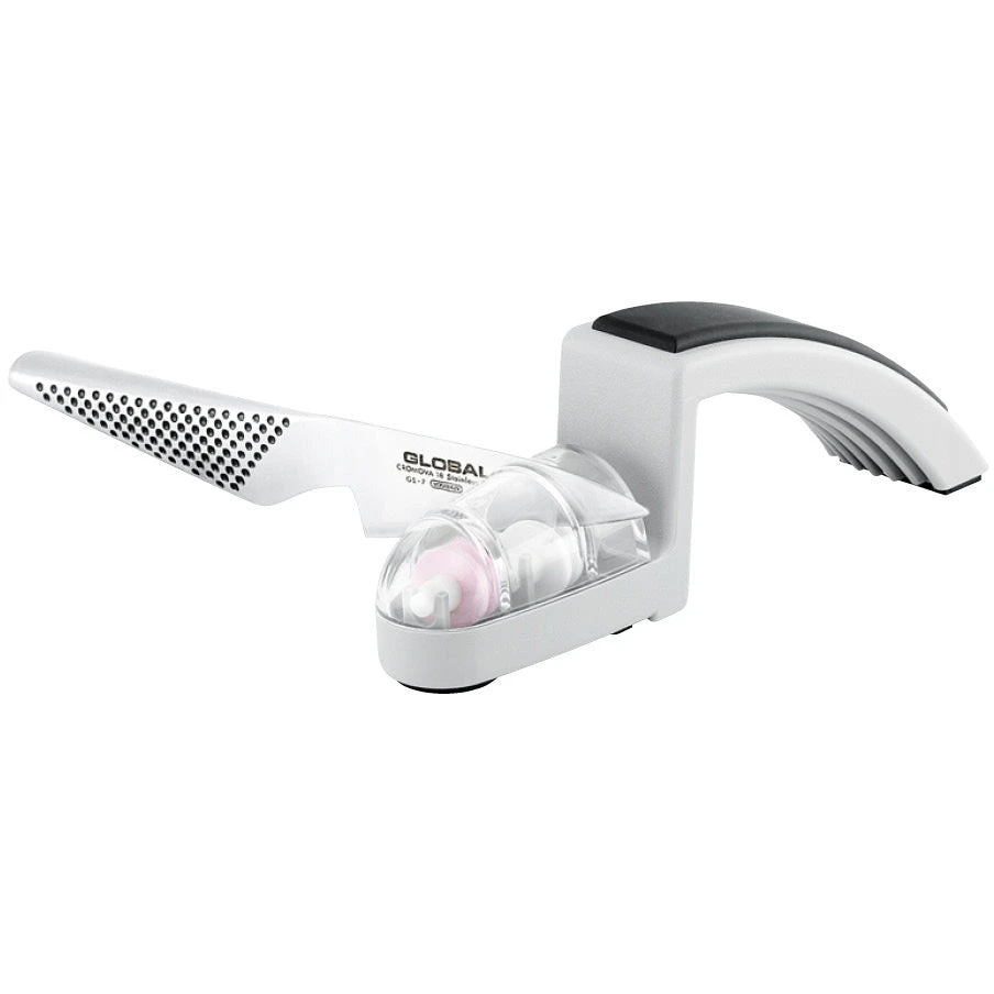 Sharpen your cooking skills with the Minosharp 2 Stage Blade Sharpener from Global. The Minosharp 2 Stage Blade Sharpener is a significant step-up from Global’s previous models, and you will feel the difference. The draw-through ceramic water sharpener is complete with three wheels ranging from coarse to fine creating a truly impressive edge.