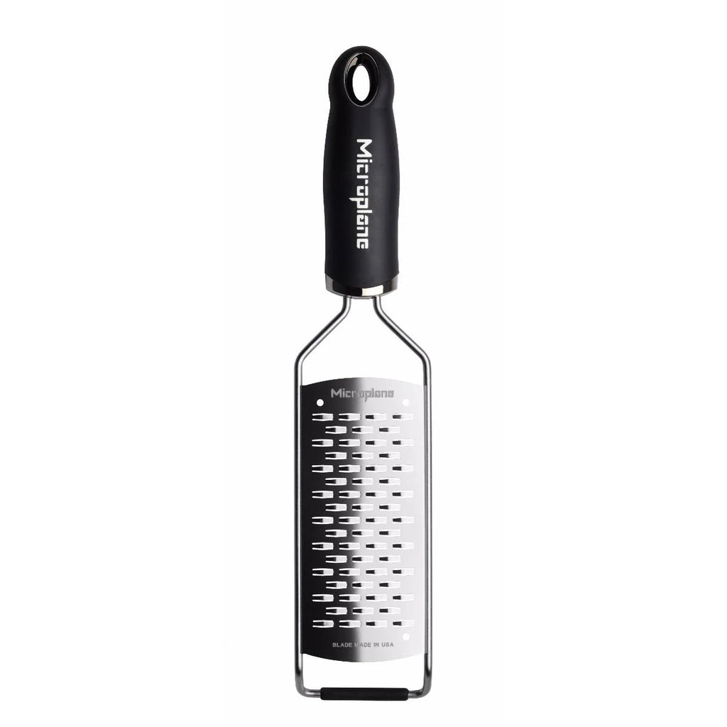 Protect your hands as you grate away by using the professional grade Microplane Gourmet Series Medium Ribbon Grater.