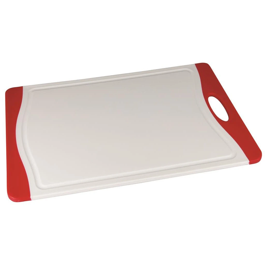 Slice and dice your veggies with ease using the Pyrolux Cutting Board 42cm x 29cm – Red. Specifically designed to make preparing ingredients easier and more efficient, this cutting board is made out of anti-microbial materials to prevent bacteria growth and odours. With a reversible construction, this cutting board features a groove that runs around the edges to catch excess juices and non-slip, soft touch handles that will guarantee that the board won’t move when you’re cutting.