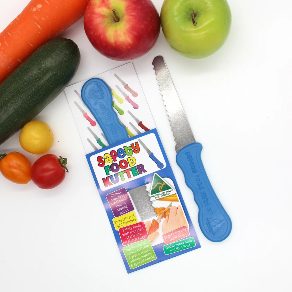 This newly designed Kiddies Food Kutters innovation features a larger ergonomic handle and a longer, wider blade, making it suitable for children from 5 years of age and upwards! Designed with families in mind from tweens, adults, people with special needs, to the elderly the Safety Food Kutter features rounded teeth with no sharp edges, allowing anyone to cut foods safely with no injuries or cuts to the hand.